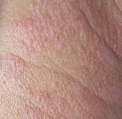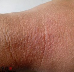 1.过敏性皮炎:一旦产生皮疹,刚开始表现为针头至粟米粒大小,密集的红斑、丘疹和丘疱疹,常对称分布,有瘙痒或者有灼热感。伴有少许柔软而细薄鳞屑,皮肤皱纹清楚,局部温度稍低。因反复搔抓可出现湿疹样皮疹,以丘疹为主,水疱、糜烂或渗出较少。