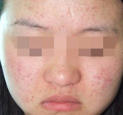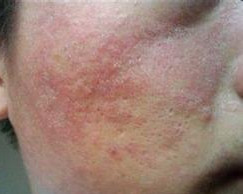 4.螨虫性皮炎:患者皮肤变粗糙,有脱皮现象。在夜间面部会有瘙痒感。面部多油,毛孔变粗大,鼻周毛孔有黑头并增多。青春痘反复发作,鼻上痤疮反复发作,毛血管扩张,皮肤开始增生性肥厚,呈橘皮状红肿。前胸、后背生出红色小疙瘩。还出现断发、头发分叉,头皮屑增多等等。